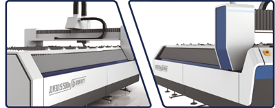 3、橋聯(lián)激光切割機采用鋁鑄橫梁,重量輕,動態(tài)響應好,加速更快,綜合切割效果更好;